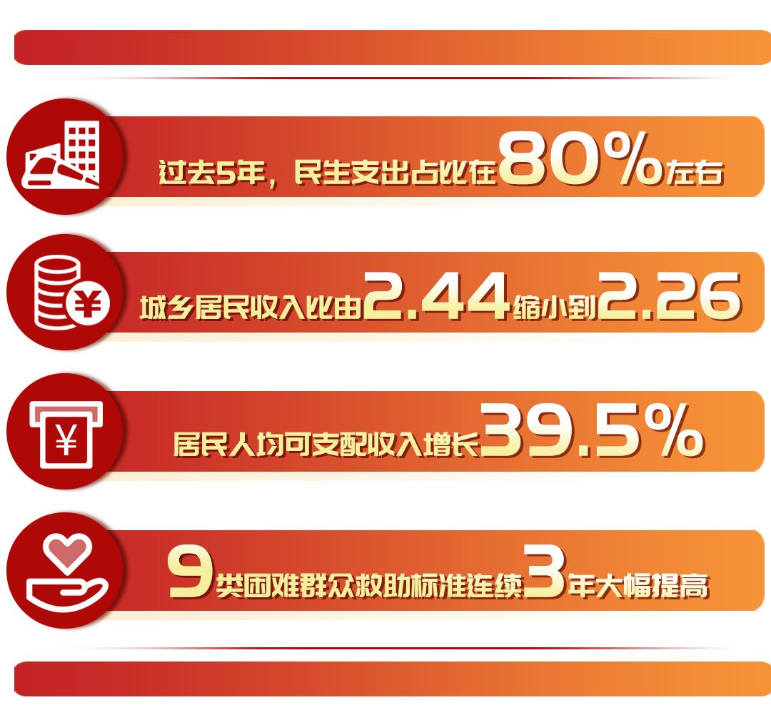 过去五年,民生支出占比稳定在80%左右,城乡居民收入比由2.44缩小到2.26,居民人均可支配收入增长39.5%,9类困难群众救助标准连续3年大幅提高,这些都关系到山东群众对美好生活的切身感受。