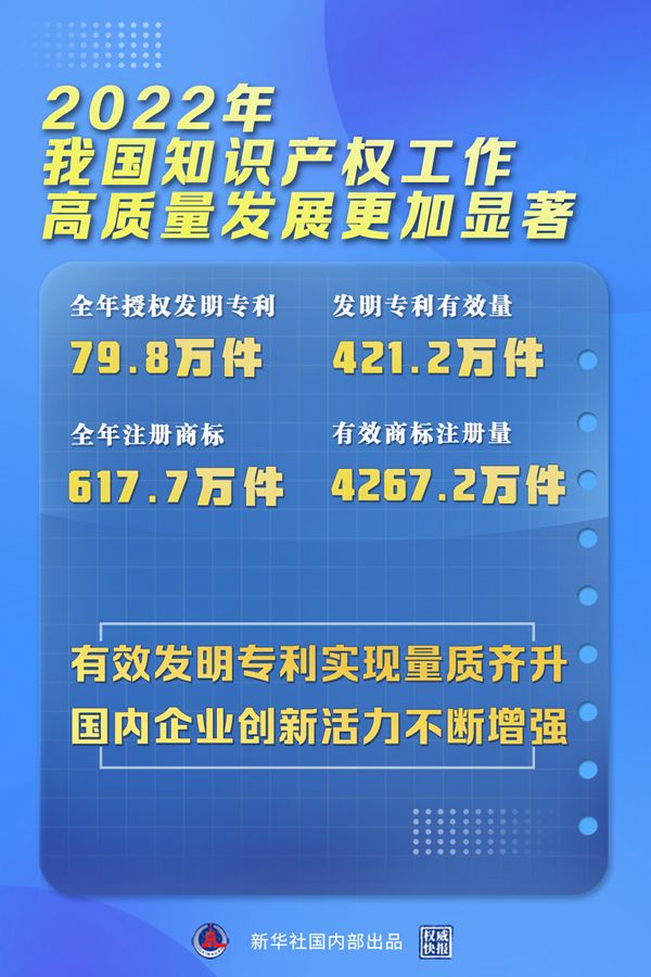 ▶ 2022年我国授权发明专利79.8万件。
