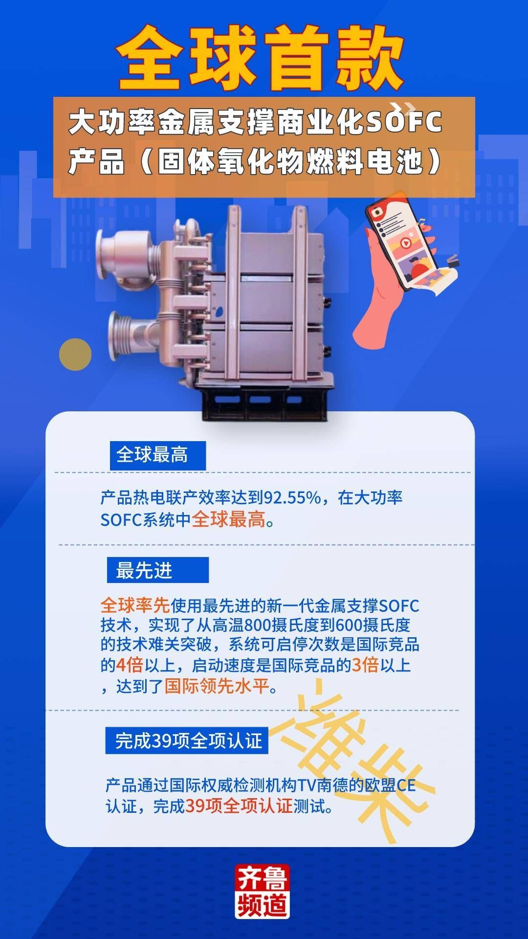 2023年2月18日,潍柴发布全球首款大功率金属支撑商业化SOFC(固体氧化物燃料电池)产品。该产品的热电联产效率高达92.55%,创下了大功率SOFC热电联产系统效率全球最高纪录。