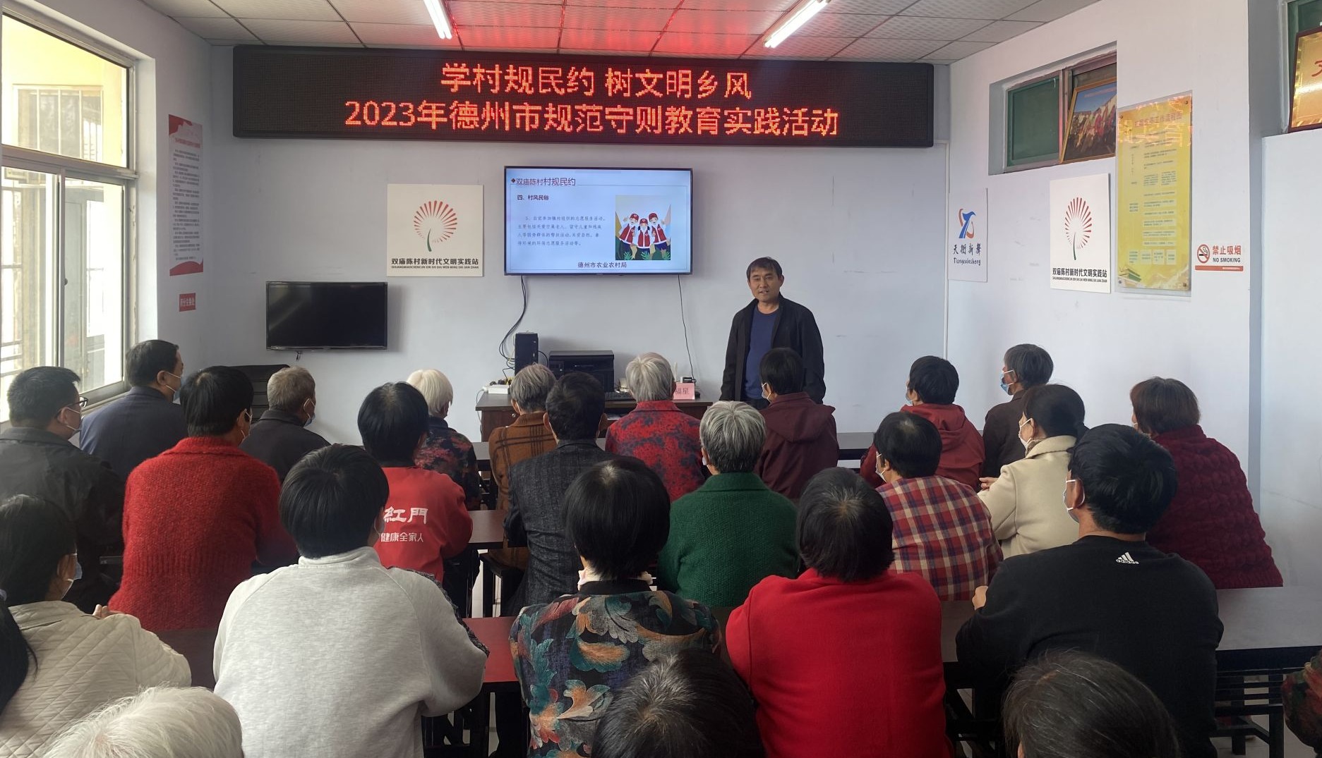 活动采取讲座的形式,志愿者围绕村规民约的定义和意义、村规民约的制定或修订程序、双庙陈村村规民约等方面进行宣讲,并对村规民约中与大家联系密切的道德规范、村风民俗、邻里关系、家庭关系等内容进行了深入细致的讲解,倡导广大村民正确践行村规民约,树立文明新理念。