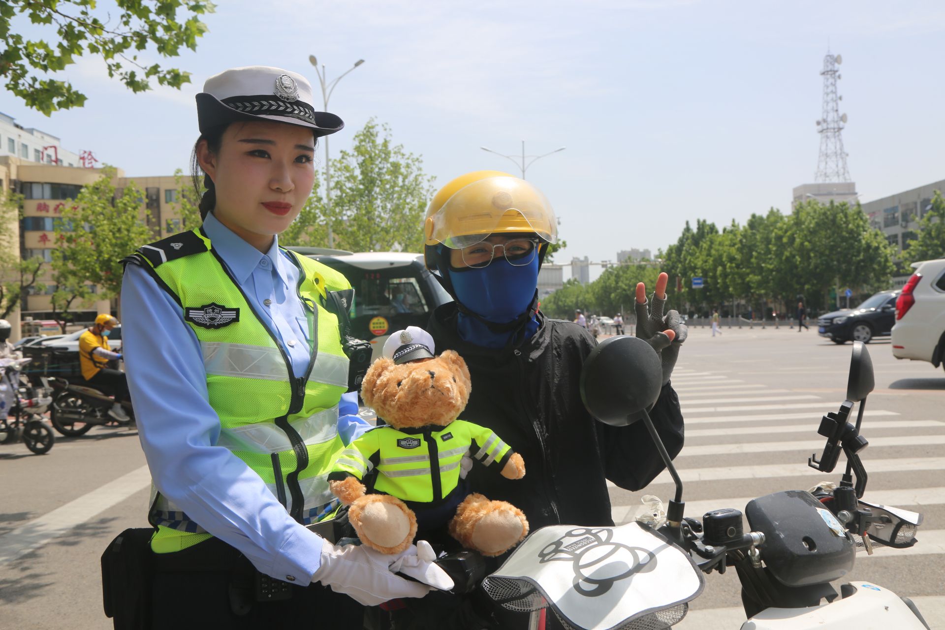 近期,热门网红“交警小熊” 火遍全网 ,不少市民网友纷纷实名求“熊”。市公安局交警支队直属一大队立即安排,在“六一”国际儿童节当天开展“我文明德州文明——我是文明交通代言人”主题宣传活动,在街头随机寻找文明出行参与者,赠送“交警小熊”玩偶。