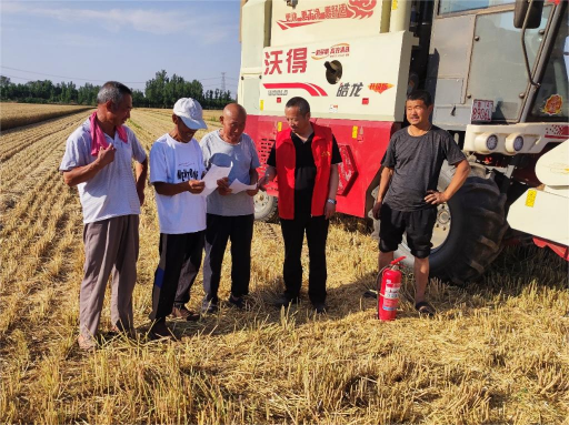 家住吴辛村的农机手吴研强也是村麦田防火宣传志愿服务队的一员。在麦收期间,他不仅严格按照规定在收割机上配备灭火器,还在农忙之余积极向父老乡亲科普麦田防火小技巧。