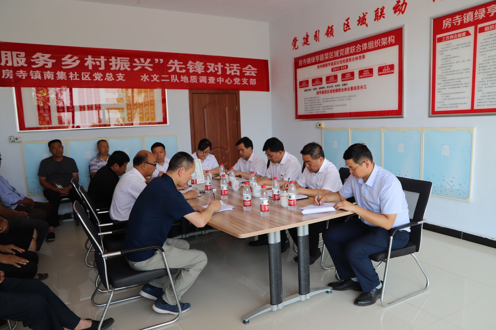 6月15日,省地矿局水文二队地质调查中心党支部一行,前往德州市派“第一书记”帮扶村——禹城市房寺镇南集社区,召开“服务乡村振兴”先锋对话会。