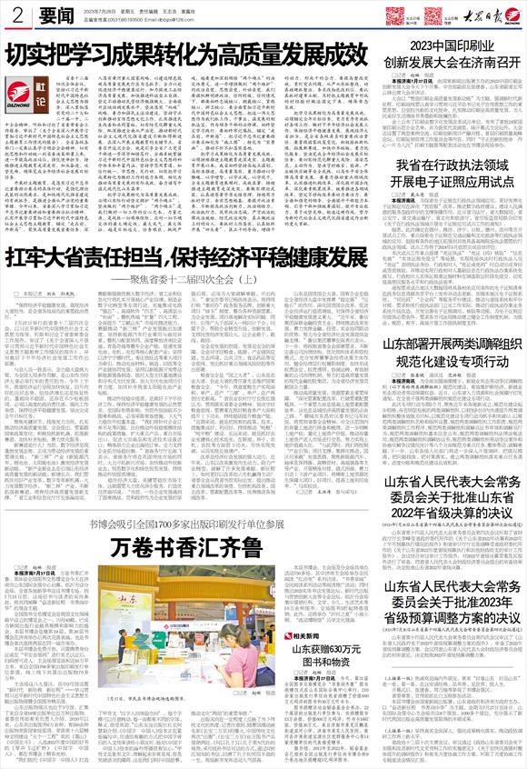 本报济南7月27日讯 万卷书香汇齐鲁。第31届全国图书交易博览会今天在济南市山东国际会展中心启幕,临沂市设分会场,全省各地新华书店设书博专场。到7月31日前,这场好书与读者的双向奔赴,将共同阐释“奋进新征程 书香润中华”的展会主题。