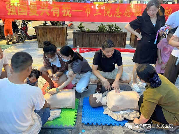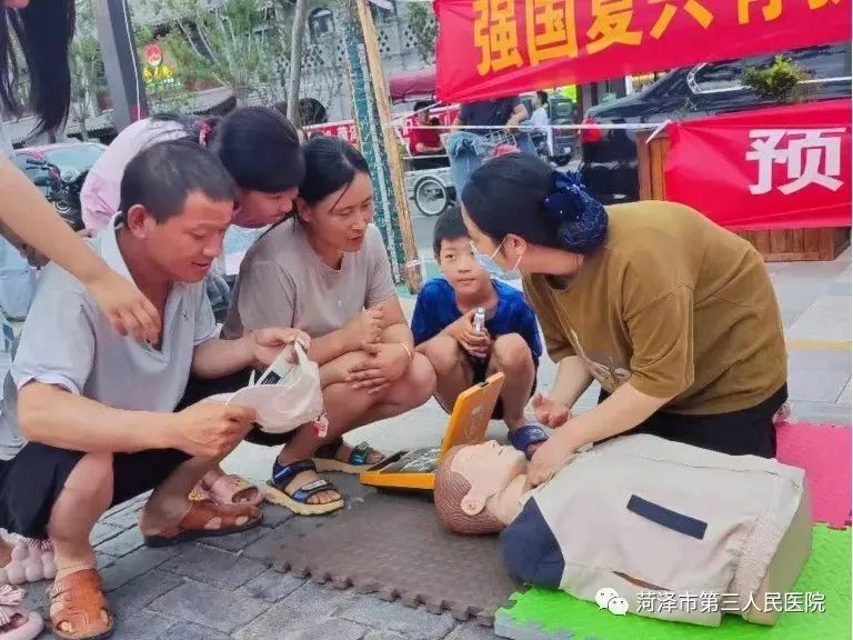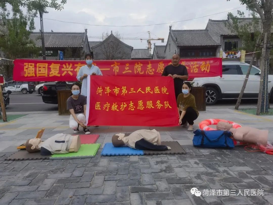 为提高居民健康意识和自我保健能力,推动志愿服务高质量发展,菏泽市第三人民医院以“强国复兴有我”主题志愿服务活动山东启动仪式为契机,于7月28日下午在菏泽曹州古城广场开展以“强国复兴有我”为主题的医疗救护志愿服务活动。
