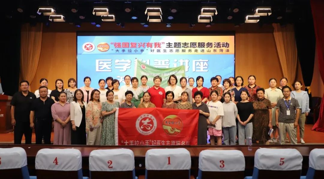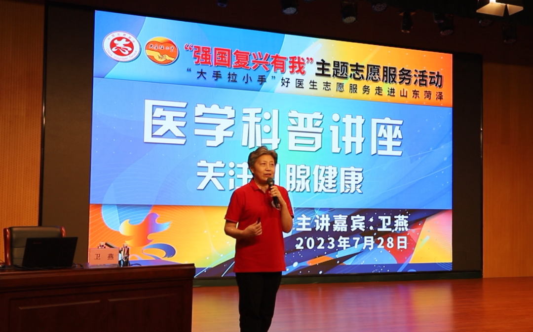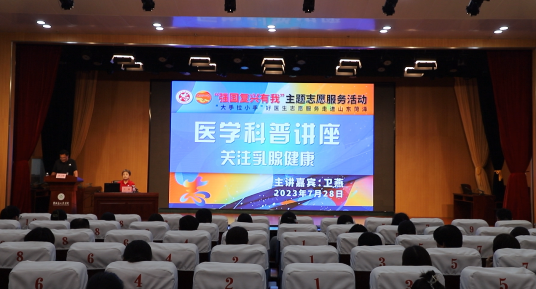 7月28日下午,"强国复兴有我”主题系列志愿服务活动“大手拉小手”好医生志愿服务队队长、北京大学医学博士、北京肿瘤医院主任医师卫燕为大家带来“关注乳腺健康“为主题的科普讲座在鄄城县人民医院技能培训中心四楼多功能报告厅举行。