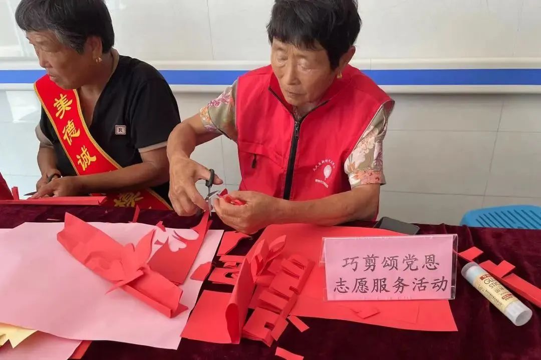 活动现场开展义剪送清凉、巧剪颂党恩等系列新时代文明实践活动。本次活动邀请剪纸文化爱好者,在现场为大家介绍剪纸文化,传授剪纸技巧。大家按照讲解步骤纷纷动手实践,精剪细刻,一幅幅生动鲜明的作品跃然纸上。
