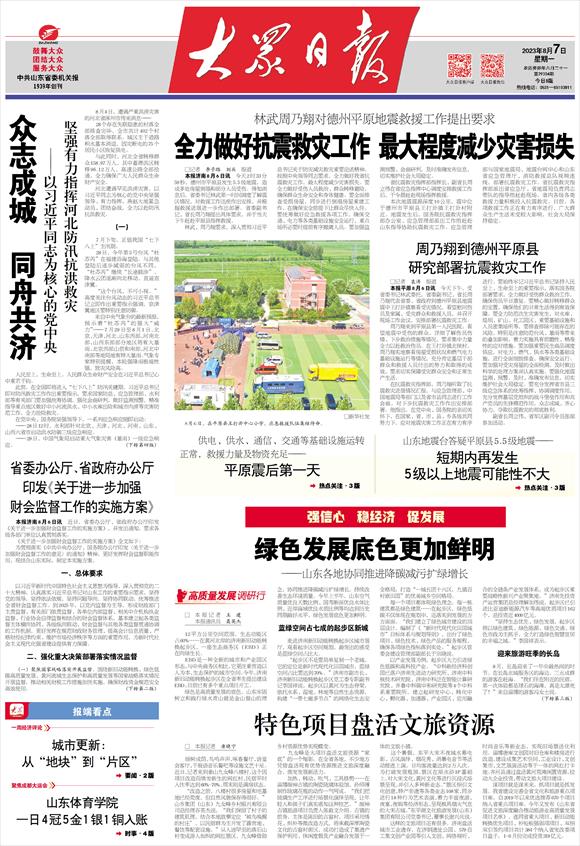 绿色是高质量发展的底色。山东牢固树立和践行绿水青山就是金山银山的理念,协同推进降碳减污扩绿增长,持续改善生态环境质量。今年上半年,山东空气质量优良天数比例、国考断面优良水体比例、近岸海域优良水质比例等均达到历史同期最好水平,绿色发展底色更加鲜明。