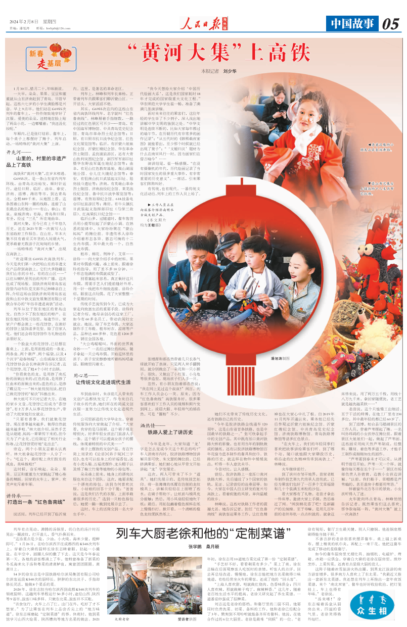 车厢内,已是张灯结彩。餐车上,每个桌子上都摆好了摊子。列车启动,一场特殊的“黄河大集”上演。