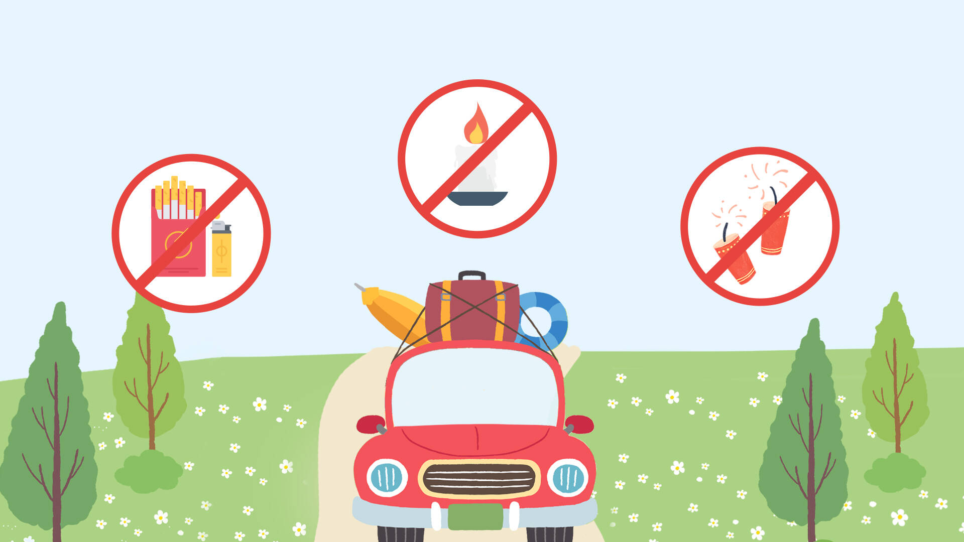 踏青爬山:不要点火野炊、不要乱丢烟头、不要在山林玩火。
