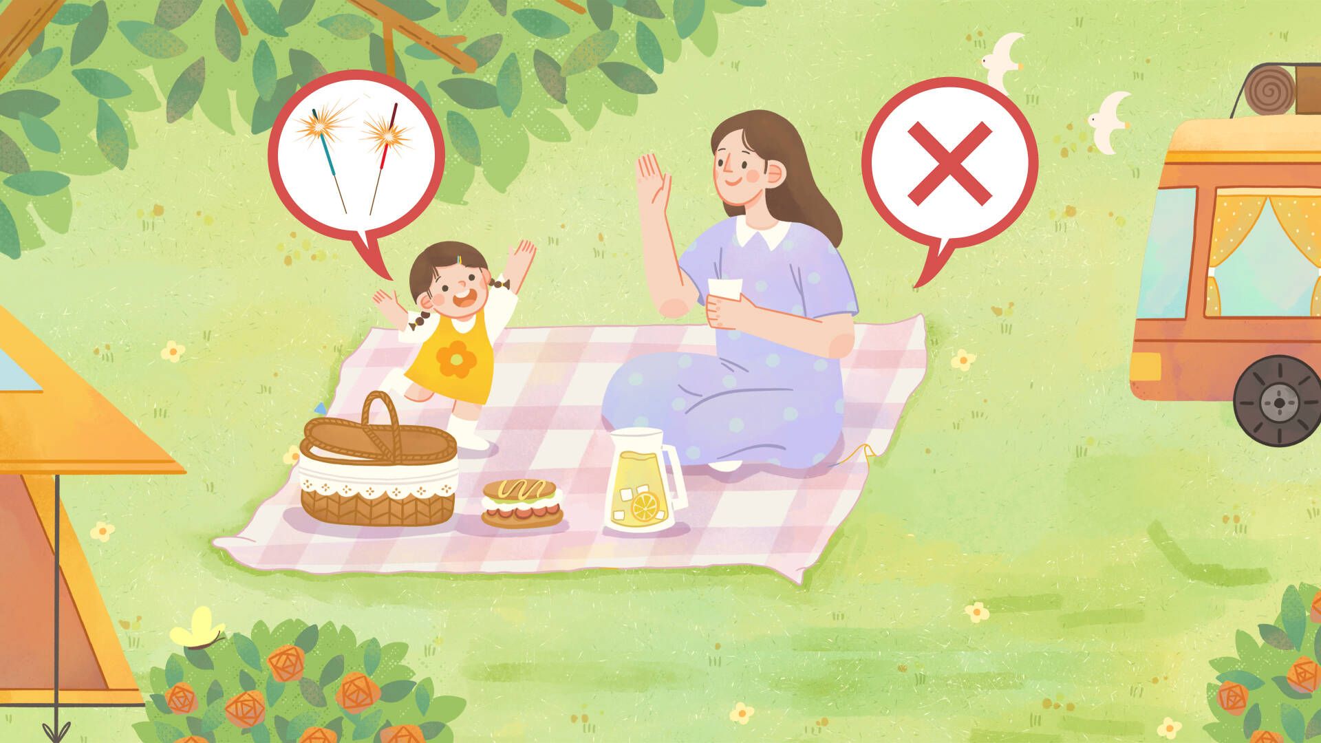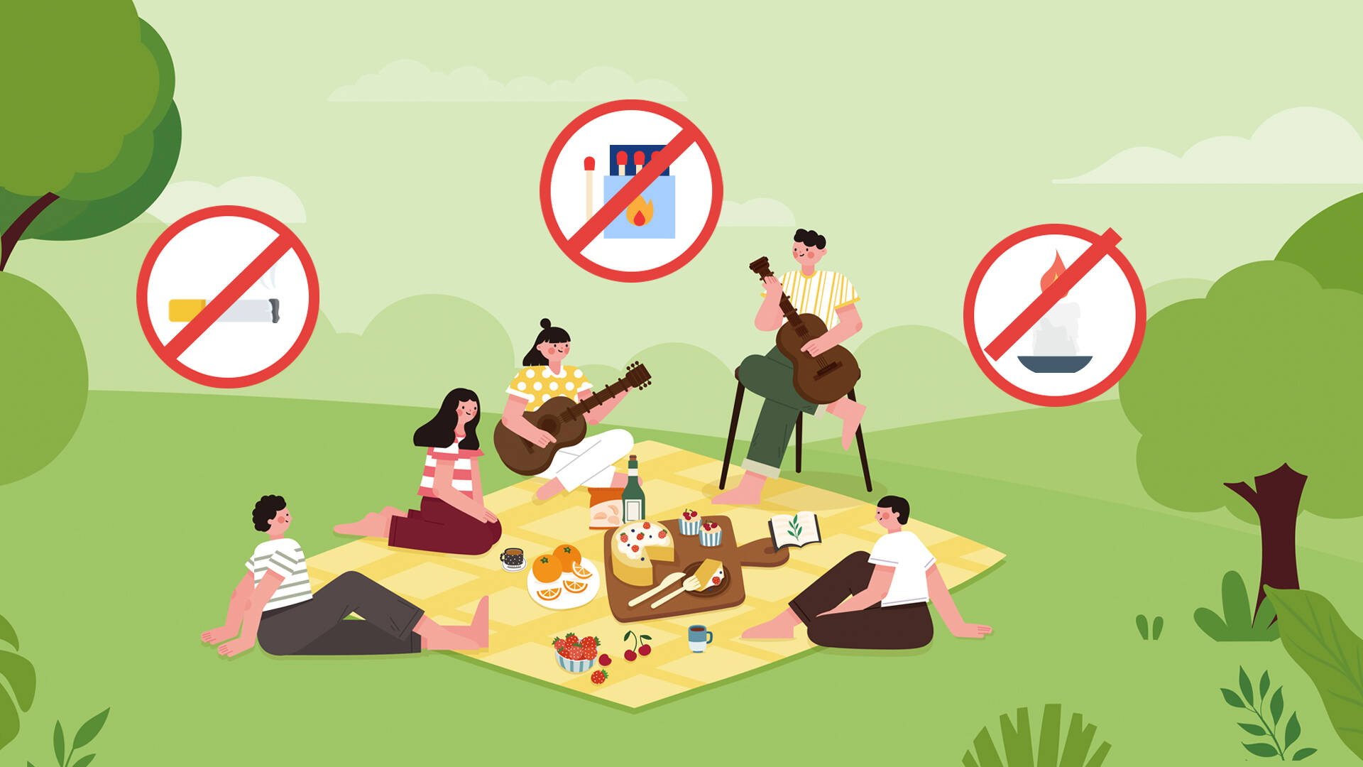 外出郊游时,不把火柴打火机等火源带入树林、草坪。