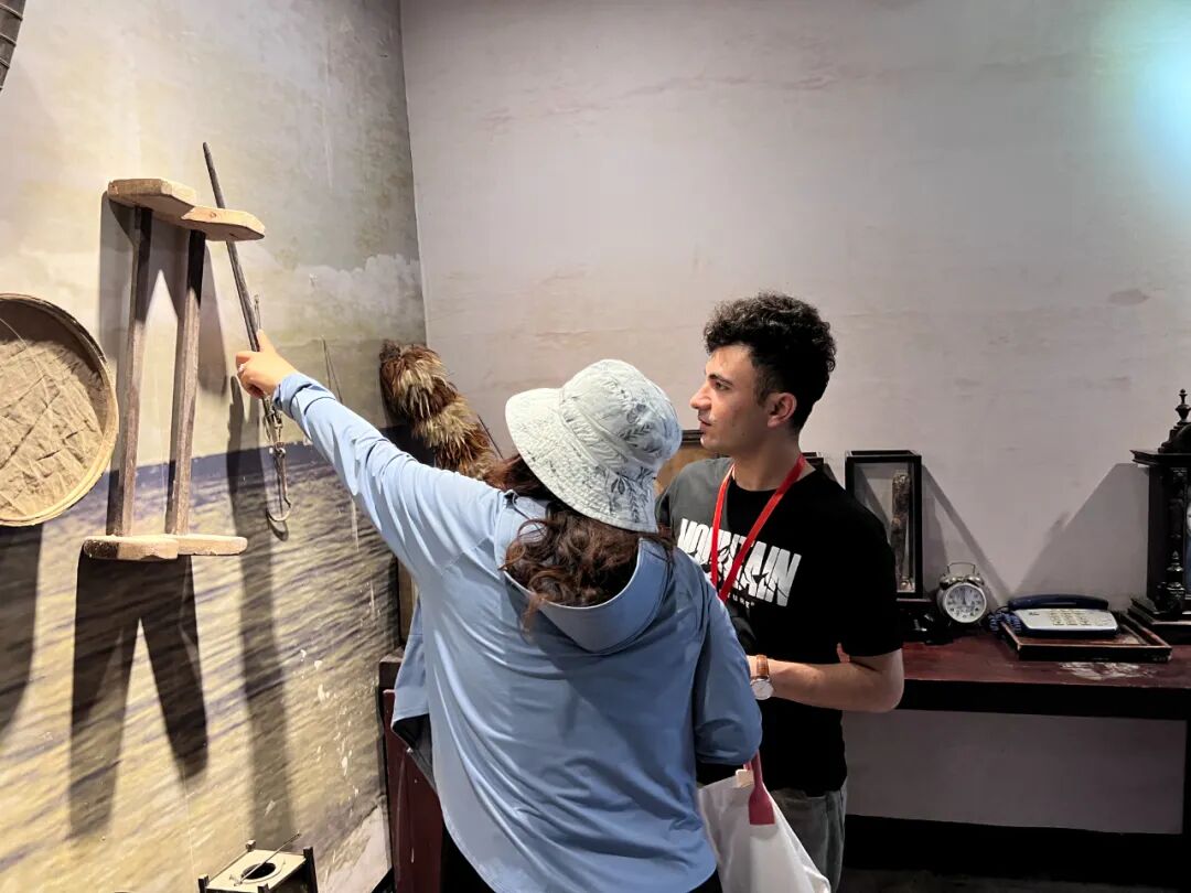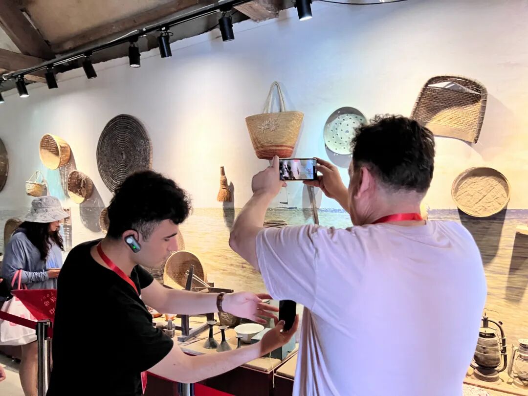 离开育英小学后,采访团一行沿着东楮岛村的特色古街继续游览,这条街上设有咸鱼坊、豆腐坊,还有东楮岛抗战记忆馆,让游客能够深入了解当地的历史与文化,同时,古街上还建设有老楮树酒吧、艺术创作基地等现代站点,为传统文化注入现代活力,实现传统与现代的融合。