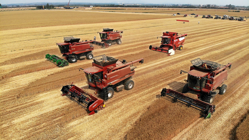 “三夏”时节,山东省6000多万亩小麦陆续集中收获,150万台套农业机械奋战田间地头。各地农业农村部门通过强化良田、良种、良机、良法、良制“五良”融合共促,努力把各环节的增产潜力转化为现实产量。