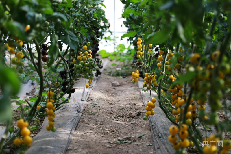 蔬菜大棚里,小西红柿挂满枝头(央广网记者 唐磊 摄)