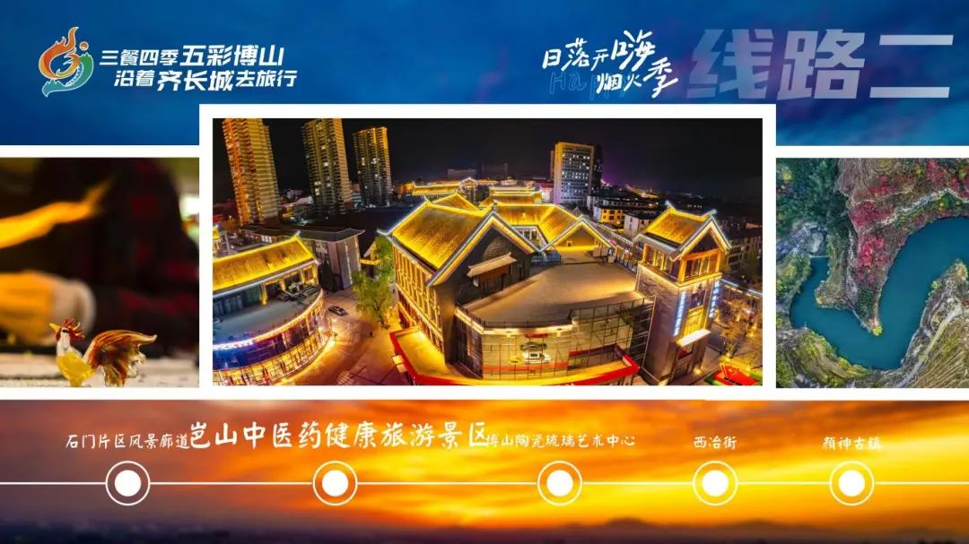 石门片区风景廊道——岜山中医药健康旅游景区(午餐岜山药膳)——博山陶瓷琉璃艺术中心——北门里(珑山路)美食广场(晚餐)——颜神古镇夜游特色活动:颜神古镇夜游市集线路三
