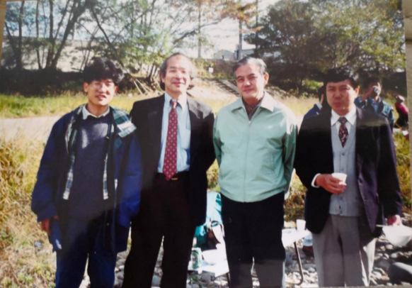薛其坤(左一)在日本求学期间与导师樱井利夫(左二)合影