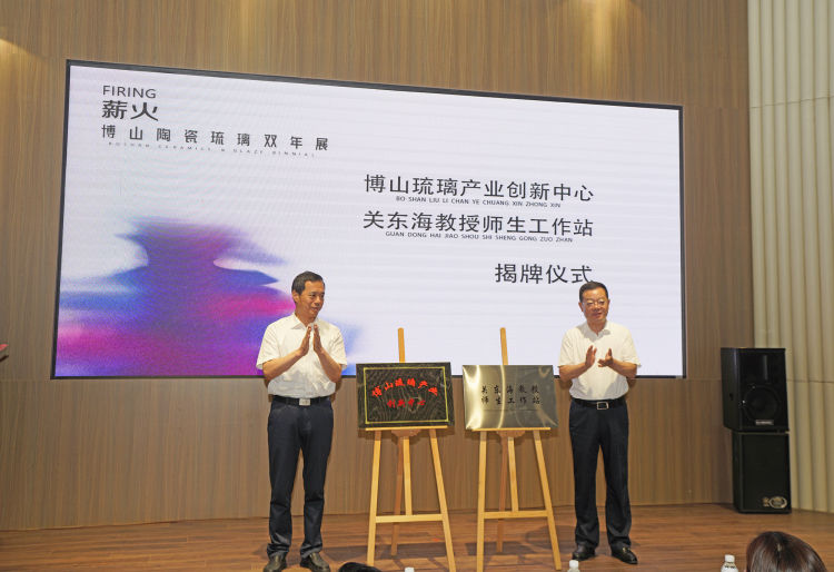 随后,与会嘉宾为今年上半年举办的大学生陶瓷琉璃创意设计大赛优秀组织单位颁奖,为博山琉璃产业创新中心、关东海教授师生工作站揭牌;主持人推介了博山陶琉研学线路。