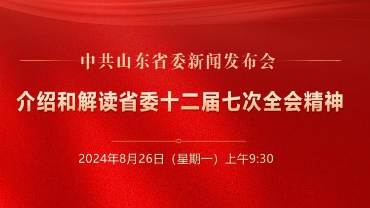 介绍和解读省委十二届七次全会精神新闻发布会 2024-08-26 11:11 闪电新闻 0 点击查看直播 中共山东省委十二届七次全体会议于8月23日至24日在济南举行。为深入学习领会习近平总书记关于全面深化改革的一系列新思想、新观点、新论断,深入贯彻落实党的二十届三中全会精神和省委十二届七次全会精神,在全省上下营造支持改革、宣传改革、推进改革的浓厚氛围,定于2024年8月26日(星期一)9:30举行省委新闻发布会,介绍和解读省委十二届七次全会精神。