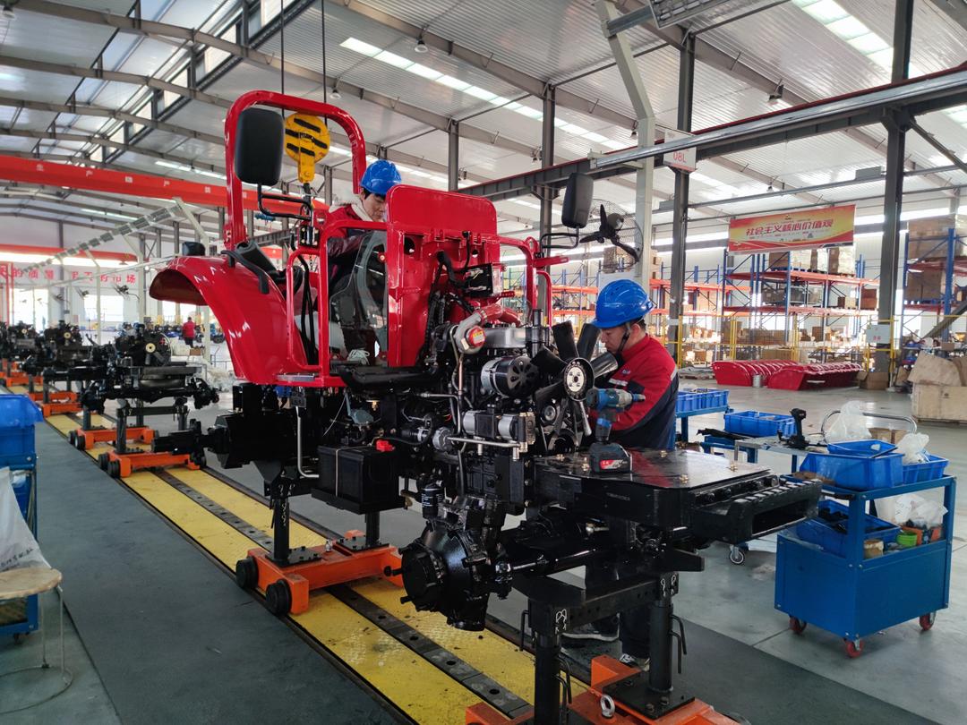 车间装配线上,人机协作下,平均每15分钟就有一台拖拉机走下生产线。“本次订单产品自制率超过70%,采用斜齿轮设计,承载能力更强,换挡也更方便,操作起来简单灵活,受到海外客户欢迎。”魏晓丽介绍,他们根据当地使用环境,专门对订单产品的发动机排放、液压系统及轴距轮距进行了调整,更好满足客户需求。
