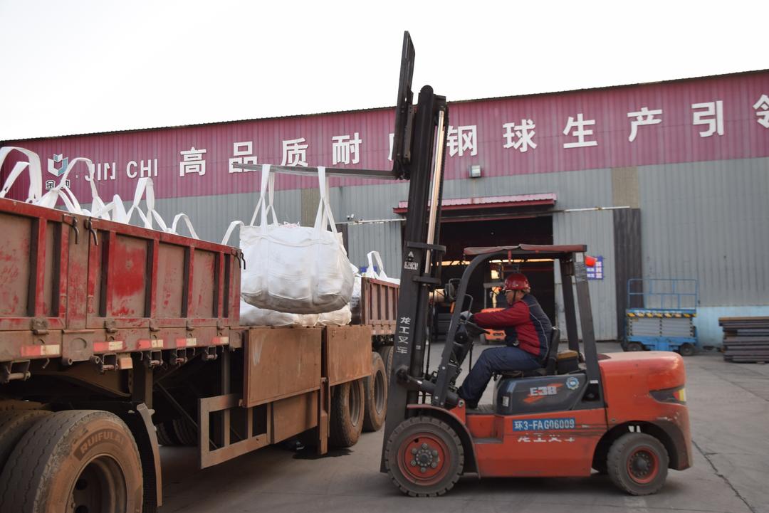 保险加持下,企业信心也进一步提振。金池重工的车间内,生产线上机器轰鸣,一个个红色的钢球滚落至收集器内。厂区内部,一辆辆叉车把包装好的钢球转运至等待的货车上。