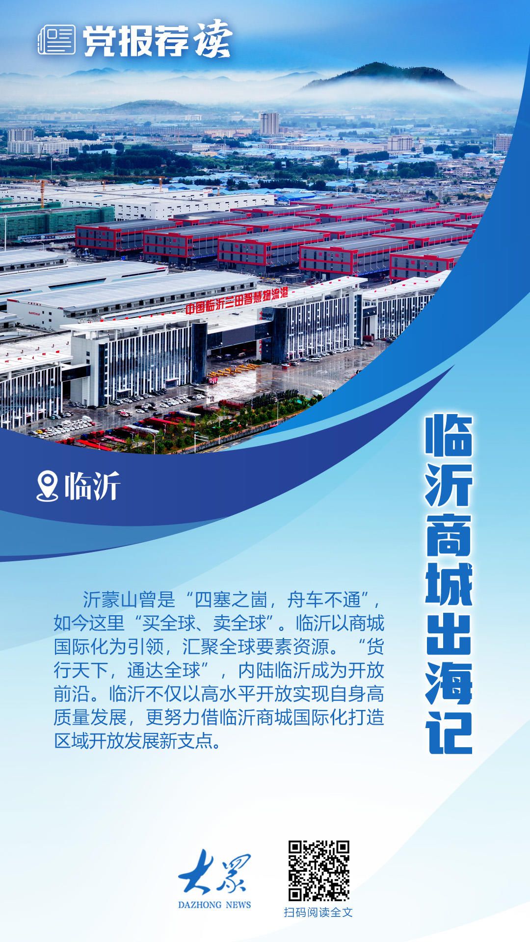 沂蒙山曾是“四塞之崮,舟车不通”,如今这里“买全球卖全球”。临沂以商城国际化为引领,汇聚全球要素资源。“货行天下,通达全球”,内陆临沂成为开放前沿,不仅以高水平开放实现自身高质量发展,更努力借临沂商城国际化打造区域开放发展新支点。