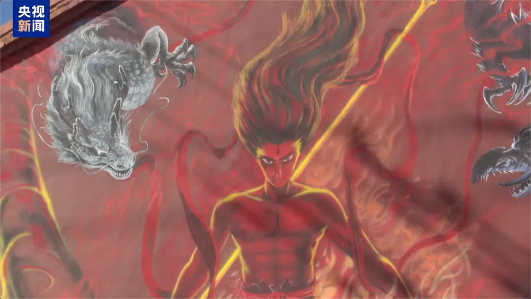 前不久,山东淄博周村区沈家村的墙壁上,出现了一幅高10米、宽8米的哪吒墙绘,吸引周边不少村民前来打卡、拍照。