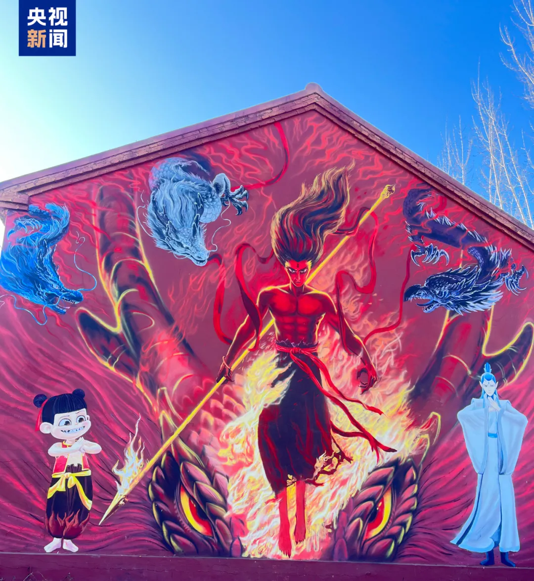 上千人前来打卡拍照沈靖宇介绍,2019年,他因一句“我命由我不由天”被电影《哪吒》圈粉。“作为年轻人,我希望自己能像哪吒一样,通过努力改变现状。”于是,2025年春节前夕,电影《哪吒2》上映前,沈靖宇参照电影海报,用墙绘的方式为“偶像”助力,也为家乡增添节日氛围。