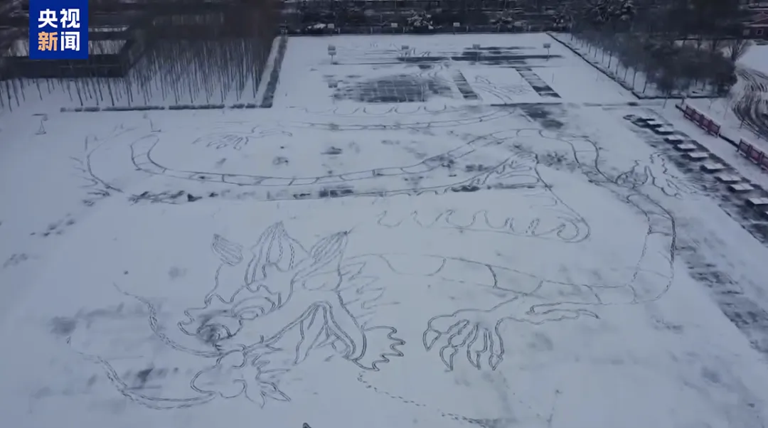 除了画笔,双脚也可以成为他画画的工具。一次雪后,看着雪白又平整的地面,他历时5个小时,走了3万多步,用双脚创作出一幅《双龙戏珠图》,为村民们送上祝福。