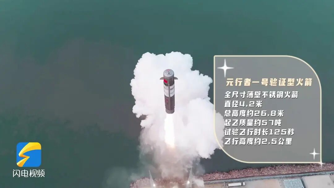 元行者一号验证型火箭为全尺寸薄壁不锈钢火箭,直径4.2米,总高度约26.8米,起飞质量约57吨,试验飞行时长125秒,飞行高度约2.5公里。