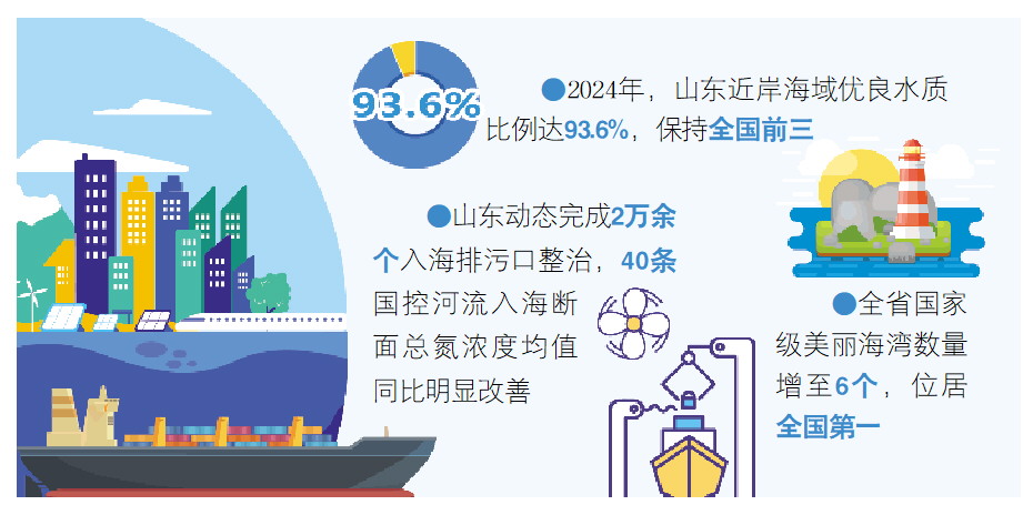 山东深入实施海洋主体功能区战略,严格落实全海域生态红线制度,创新陆海协同治理机制。2024年,全省近岸海域优良水质比例达93.6%,保持全国前三。
