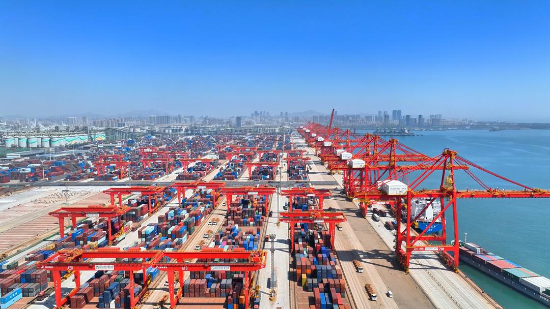 日照港顺岸开放式全自动化集装箱码头。(山东港口供图)