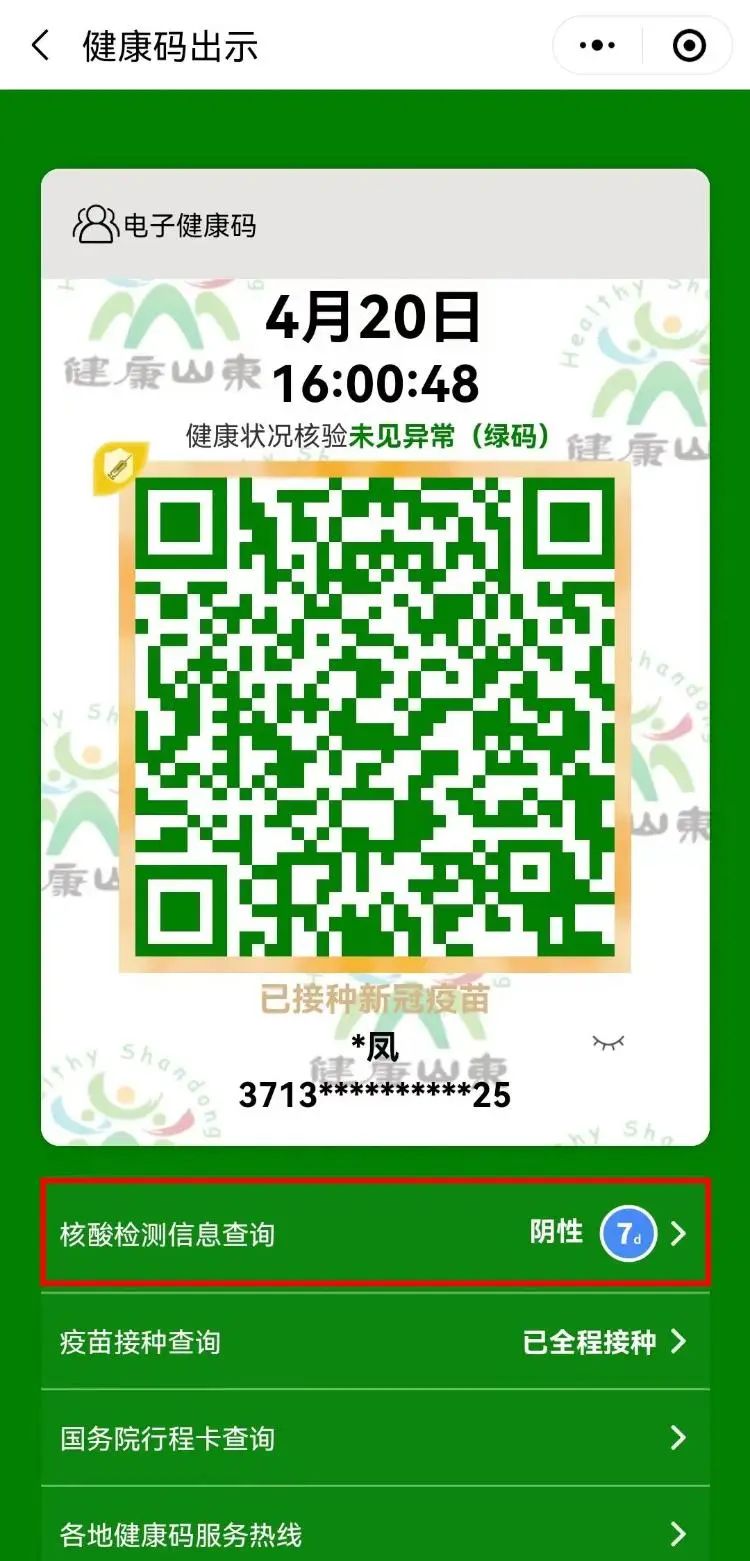 在【核酸检测信息查询】栏中显示最近一次核酸结果的时效。