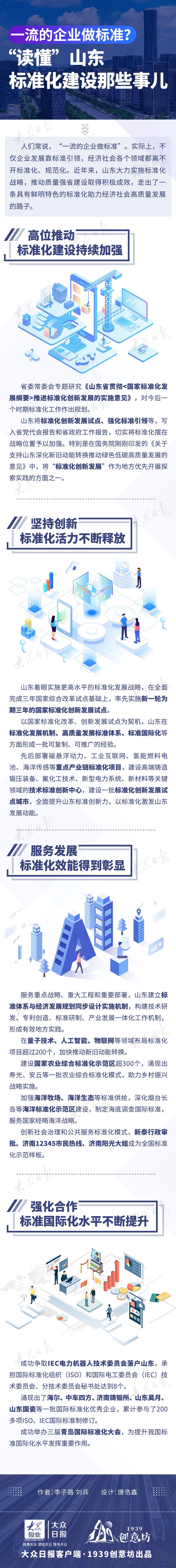 图解|一流的企业做标准?“读懂”山东标准化建设那些事儿 2022-09-13 21:12 大众日报 0 近年来,山东大力实施标准化战略,推动质量强省建设取得积极成效,走出了一条具有鲜明特色的标准化助力经济社会高质量发展的路子。 来看下图,带你“读懂”山东标准化建设那些事儿。