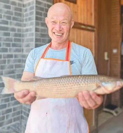 一进门,只见他正推开缸子,抓起一条扑腾蹦跳的活鱼,清水洗净后,左手握鱼头,右手持菜刀,逆向刮去鱼鳞,动作娴熟,一气呵成。分拣好食材,热油下锅,不多会儿,一盘香喷喷的红烧鱼端上了桌。客人是一对夫妻,从城里开车来蓑衣樊村,就为了吃一口黄新海做的鱼。