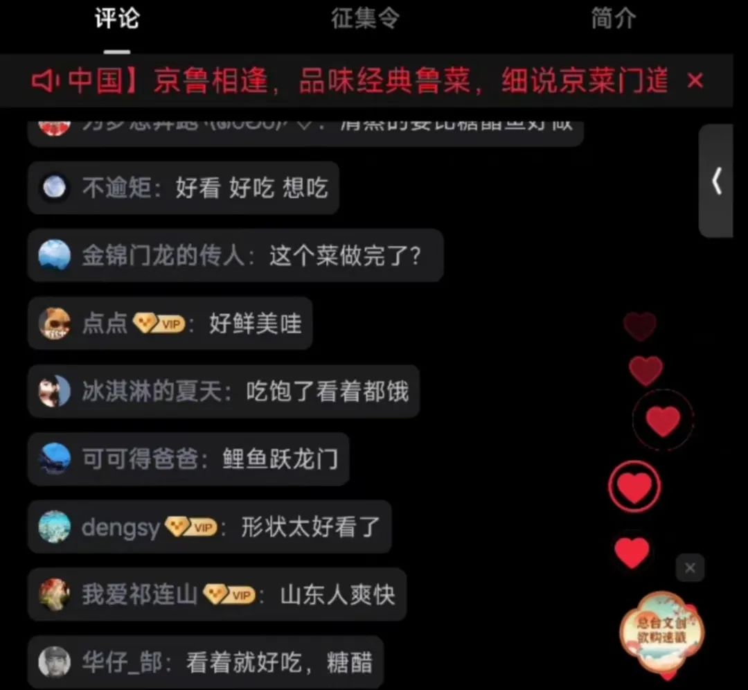十几分钟的直播连线,“糖醋鲤鱼”就吸引了687.8万人次观看,这道经典鲁菜成功俘获了全国各地网友的芳心。