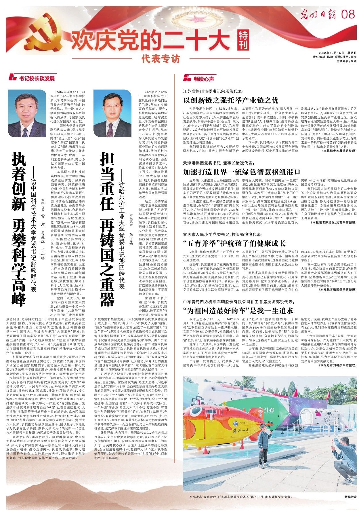 “为祖国造最好的车”是我一生追求和奋斗的目标。作为党的二十大代表,我将兢兢业业履职尽责,以饱满的精神开好这次大会,并把会议精神带回去,传递给更多的党员群众,鼓舞大家立足岗位,学技术、练本领,努力为实现中华民族伟大复兴的中国梦贡献力量。