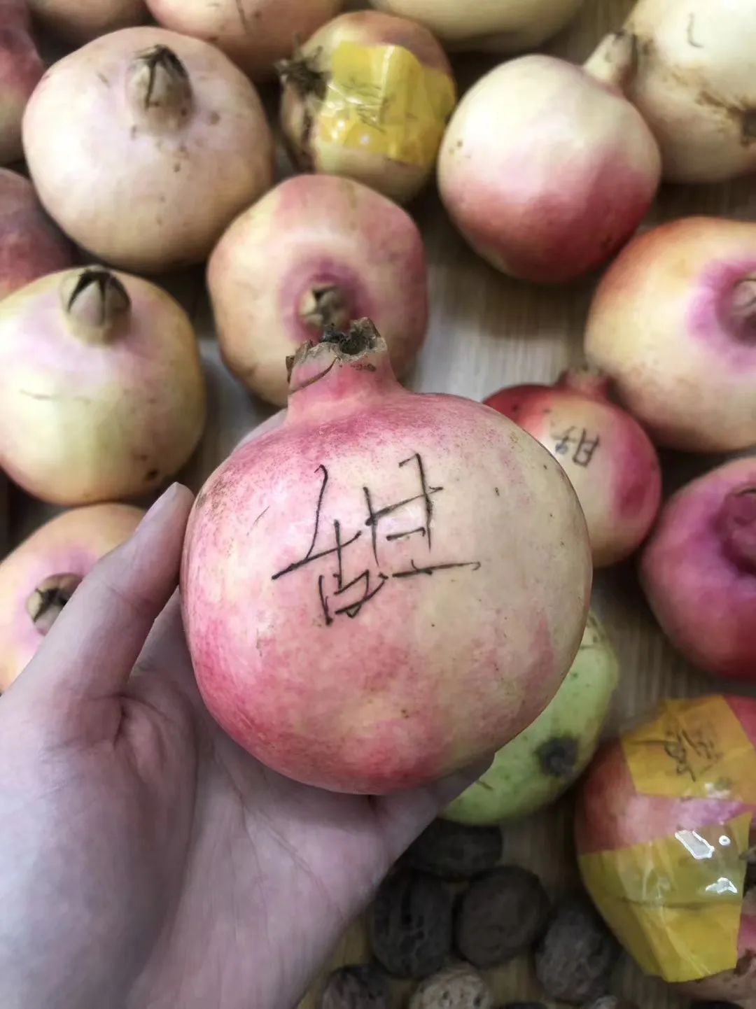 事实上,不仅酸石榴皮上有字,甜石榴上也一一写了“甜”字。