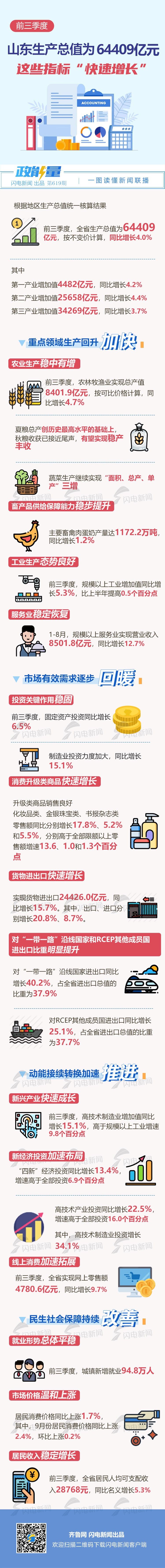 政能量丨前三季度山东生产总值为64409亿元,这些指标“快速增长”