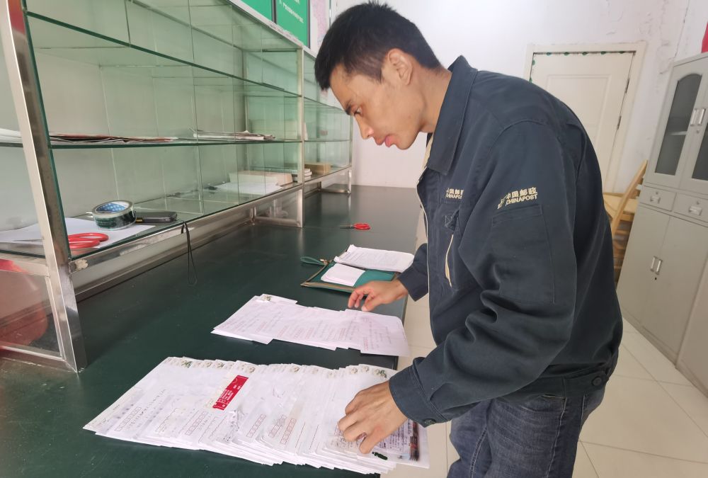 王德建在整理由于地址不详被退回的信件。(受访者供图)