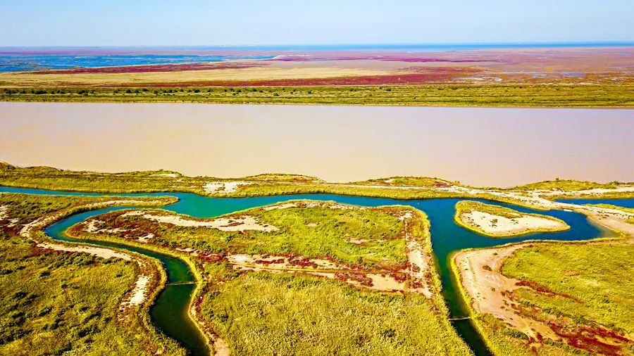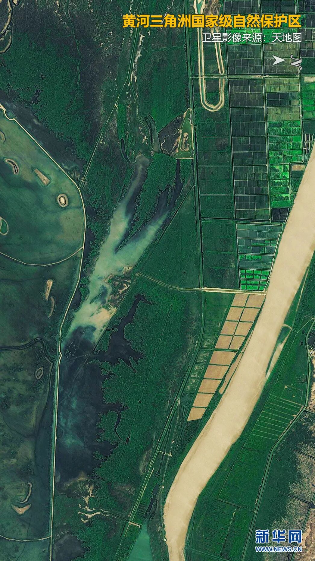 ▲黄河入海口。新华网发 (杨廷奎 摄)俯瞰黄河三角洲颜值与实力并存卫星图对比可见如今的黄河三角洲“绿意”增多,“水质”变清大片新生湿地涵养着万千物种