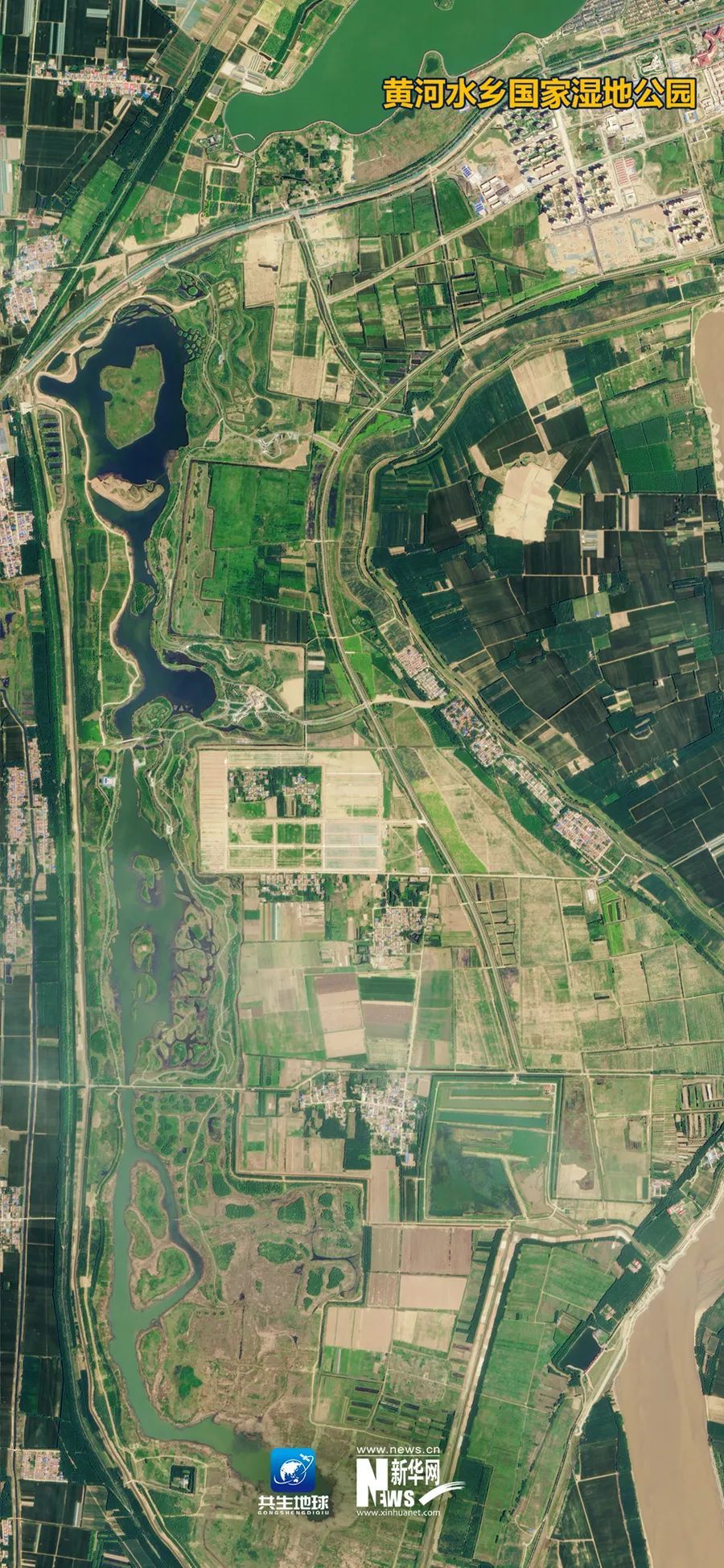 ▲卫星视角下的山东德州黄河水乡国家湿地公园。