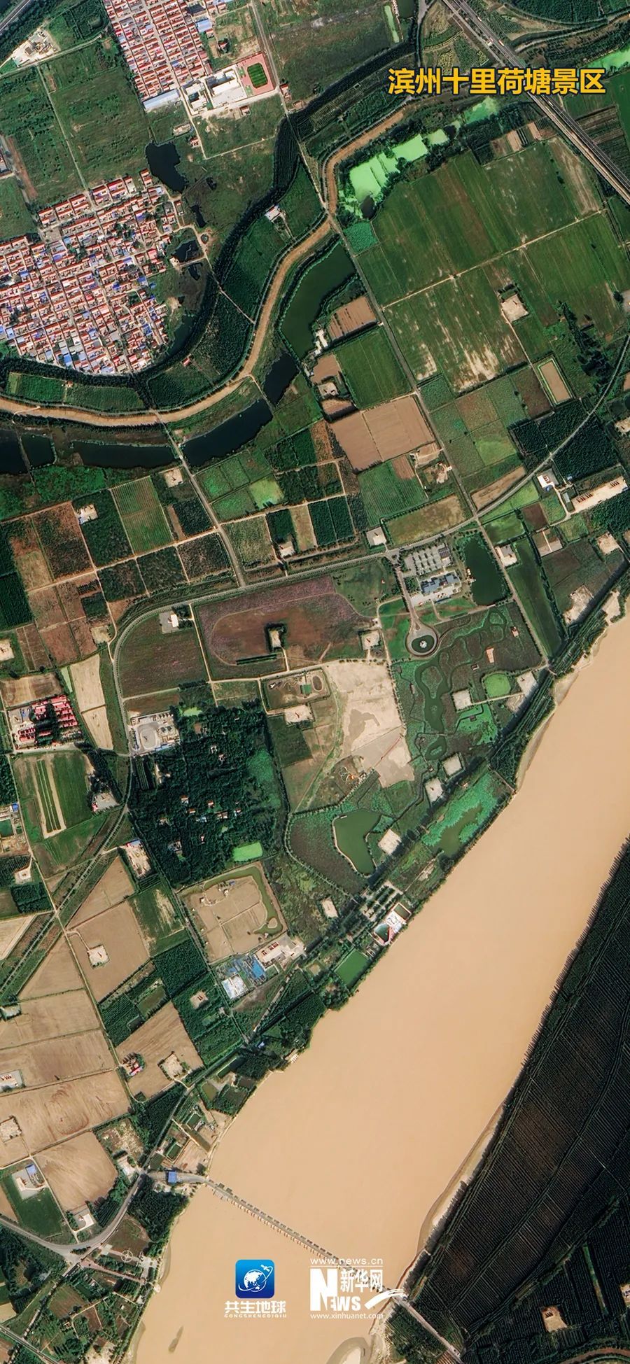 ▲卫星视角下的滨州市滨城区十里荷塘景区。