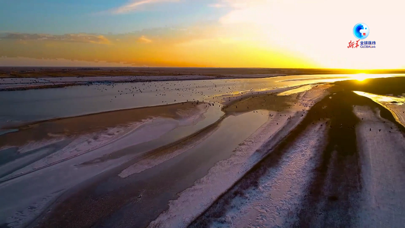 初冬时节,山东黄河三角洲自然保护区景色如画。黄河是中国第二大河流,在山东省东营市境内汇入渤海,形成的黄河三角洲拥有暖温带完整的湿地生态系统2013年,黄河三角洲湿地被国际湿地公约组织列入国际重要湿地名录。