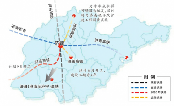 8月4日,济南市召开新闻发布会对《济南市“十四五”综合交通运输发展规划》进行解读、会上介绍,“到2025年,‘米字型’高铁网基本形成,建成济郑高铁、济莱高铁、黄台联络线,推进济滨高铁、德商高铁,实现省会经济圈市市通高铁,打造轨道上的省会经济圈。”