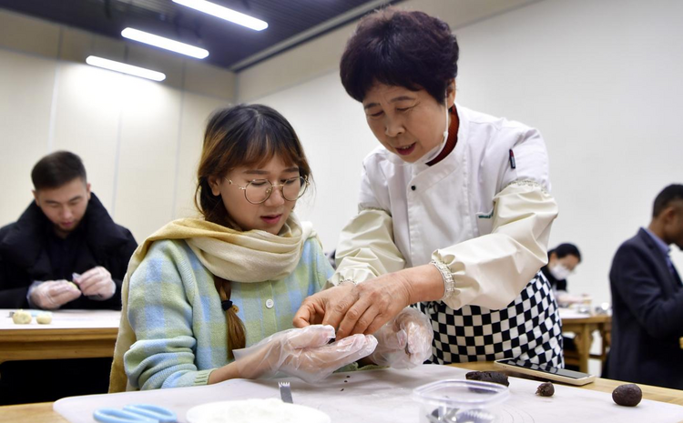 样式精美的孔府糕点制作工艺也吸引了研学团成员的目光。在糕点师傅的精心制作下,一道道味美色佳、造型精致的点心呈现在众人面前。大家纷纷体验制作工艺,品鉴各种糕点。空气中弥漫着糕点的芬芳,品尝者无不交口称赞。
