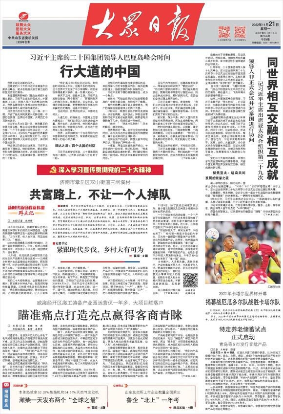 ■编者按 学习宣传贯彻党的二十大精神,是当前和今后一个时期的首要政治任务。为深入推动党的二十大精神走进基层、走进群众,进一步凝聚党心民心、鼓舞奋进力量,大众日报今起开设“新时代新征程新伟业”栏目,推出大型融媒体行进式主题采访报道。记者走进城乡社区、机关、企事业单位、校园、各类新经济组织和新社会组织,紧紧围绕党的二十大确立的发展目标和战略任务,结合山东实际,宣传各地各部门学习贯彻党的二十大精神的务实举措和实际行动,多形式、分层次、广覆盖报道干部群众立足本职岗位、扎根基层一线、认真履职尽责的生动实践,激励全省广大干部群众更加紧密地团结在以习近平同志为核心的党中央周围,在新时代新征程上继续创造新的伟业,赢得更加伟大的胜利和荣光。