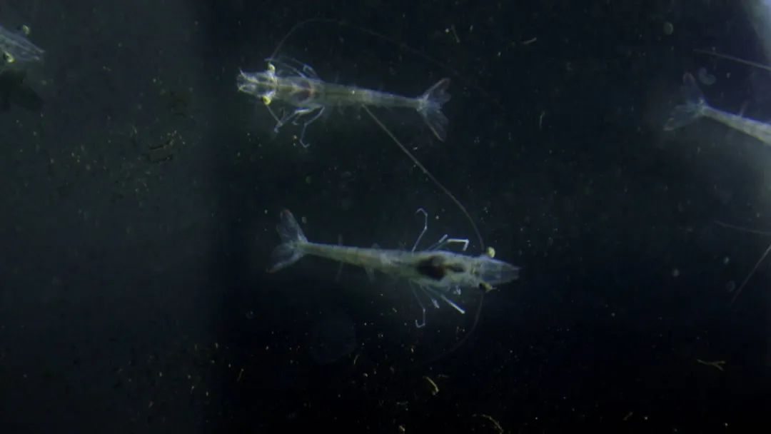 净化后的海水,加温到28到30摄氏度,一个36平方米的虾池就可以放养36000尾虾苗。海水溶氧量、病菌及亚硝酸盐等各种环境都可控制到最佳。东营市三角洲养殖繁育有限公司董事长马江:“我们要把有益(益生)菌下去,把有害的菌抑制住。(现场)你看胃里很饱满,身上没有断肠。这个黑点就是它的胃,身上一道是肠。你看从活力上、体质上还这么好,这就说明这个虾很健康。”