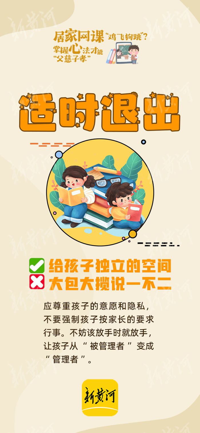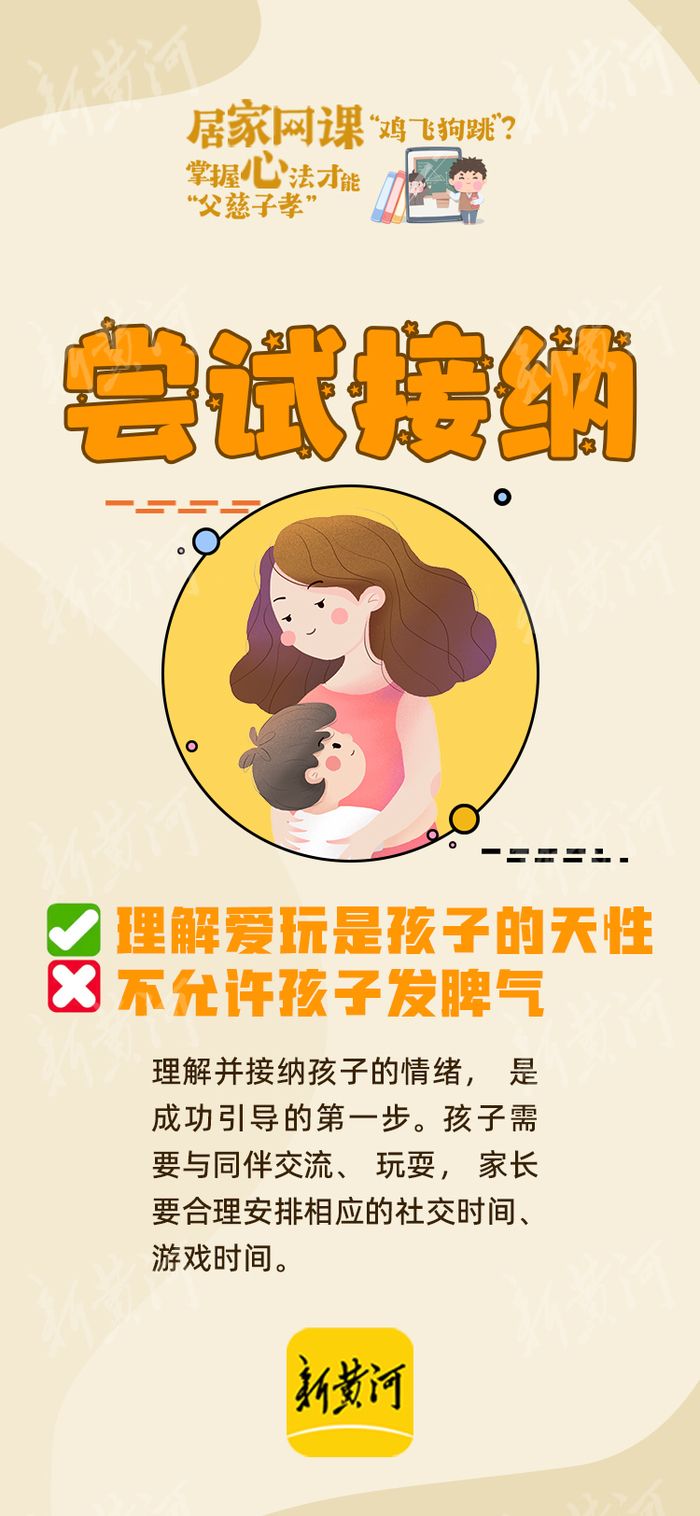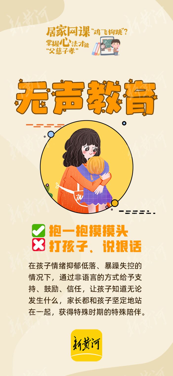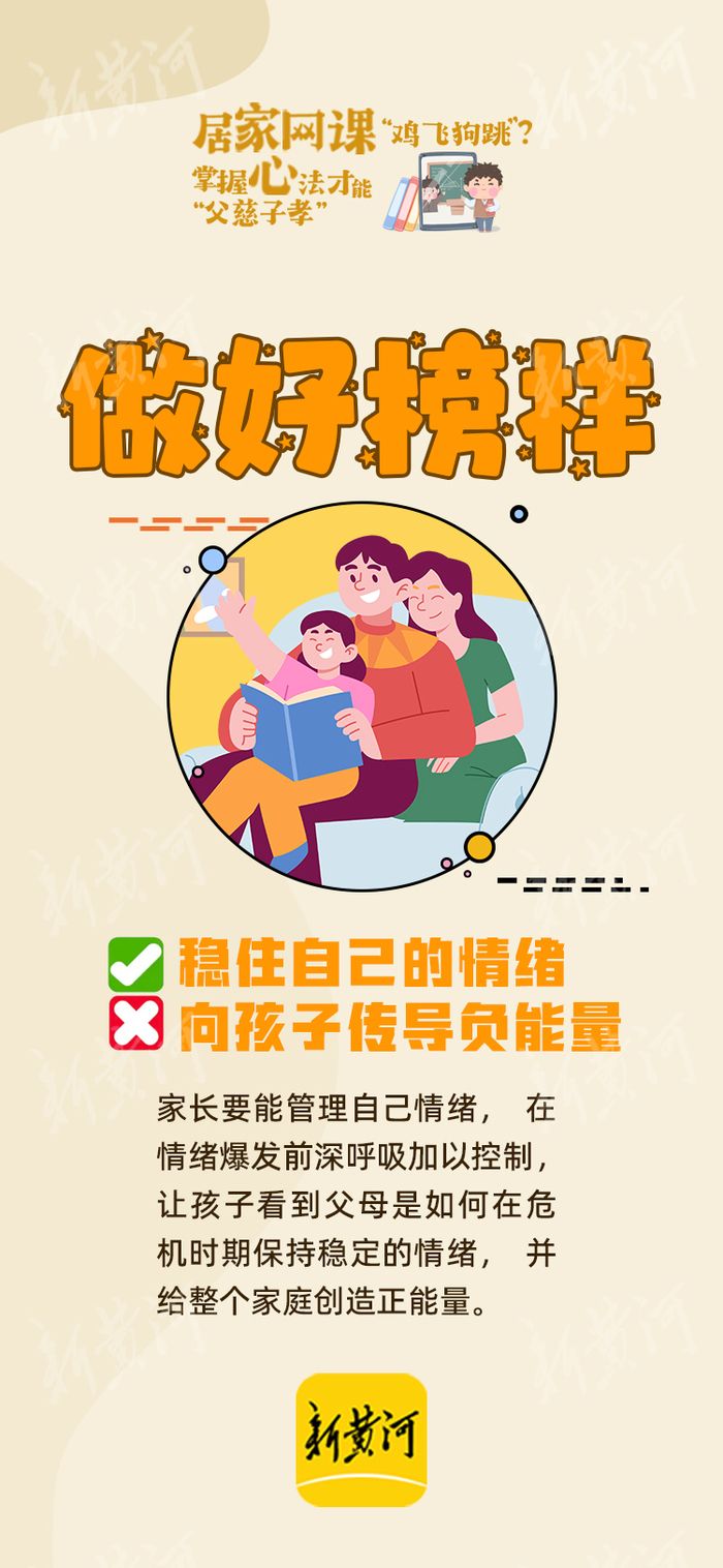 新黄河海报集 | 居家网课“鸡飞狗跳”?掌握心法才能“父慈子孝”! 2022-12-03 17:25 新黄河 0 疫情防控期间,孩子居家上网课,家长难免焦虑,一旦孩子不听话不好好学习,家庭战争“一触即发”,导致大人情绪崩溃,孩子逆反心理更强。如何在孩子网课期间,避免鸡飞狗跳的局面,让家庭更和谐?家长们做好心理调适很重要!
