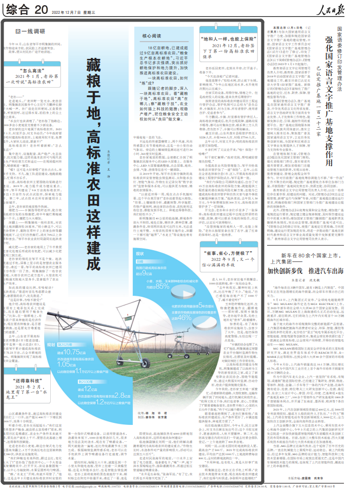 跟随记者的脚步,深入一块高标准农田。看“藏粮于地”,高标准农田“高”在哪儿;察“藏粮于技”,农业如何插上科技的翅膀;观稳产增产,把住粮食安全主动权如何从“良田”做文章。