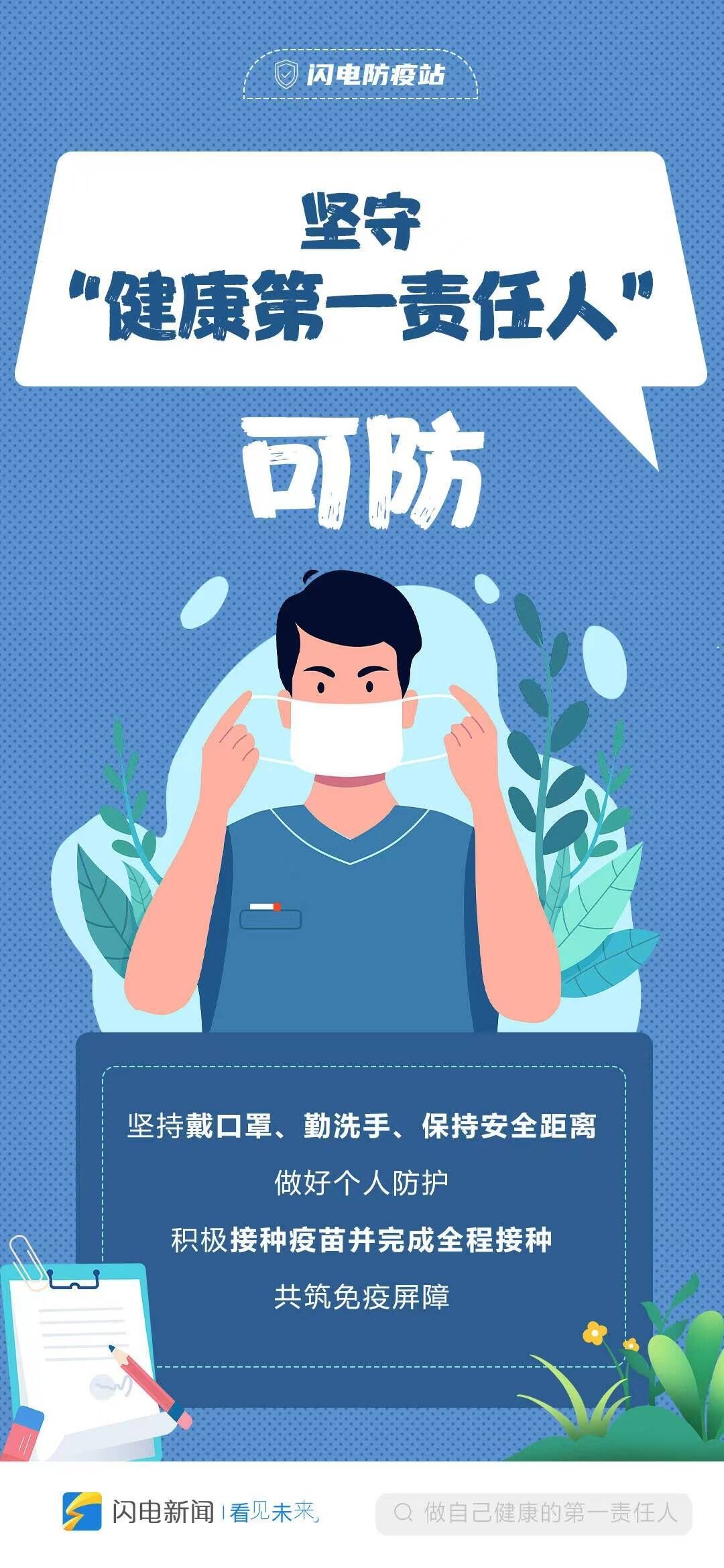 对我们每个人来说,人人都是自己健康第一责任人。在这个时候,特别是要摒弃“早阳早好”这样既没有科学依据,又影响到当前阶段防疫行动的谬论,恐慌或是不屑都不是对待病毒的正确态度。我们引导外出时,规范佩戴口罩、勤洗手,少聚集、少聚餐,注意咳嗽礼仪等。我们鼓励没有特殊情况,在疫苗接种上要应接尽接。